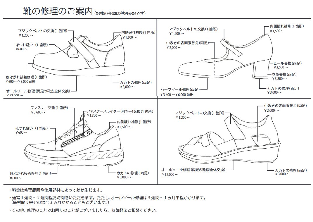 | ロビンフットの靴修理・料金表 |